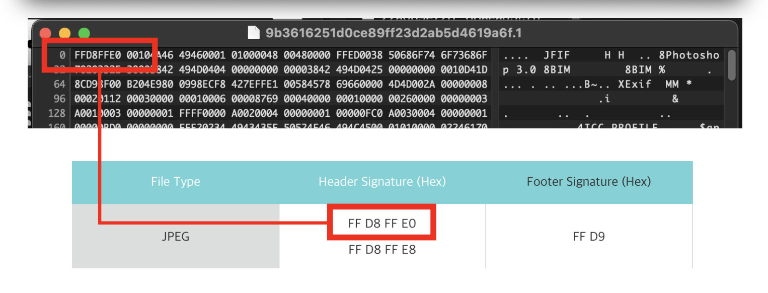 이런 식으로 헤더를 통해 파일 시그니처를 알아낼 수 있다.
