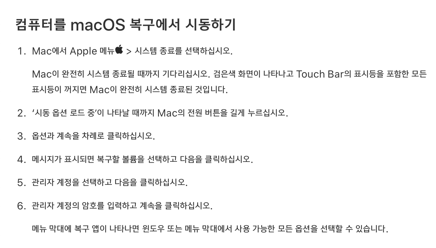 구글로 검색해보니까 재부팅 후 cmd + R 을 길게 누르면 복구모드로 넘어간다고 하는데