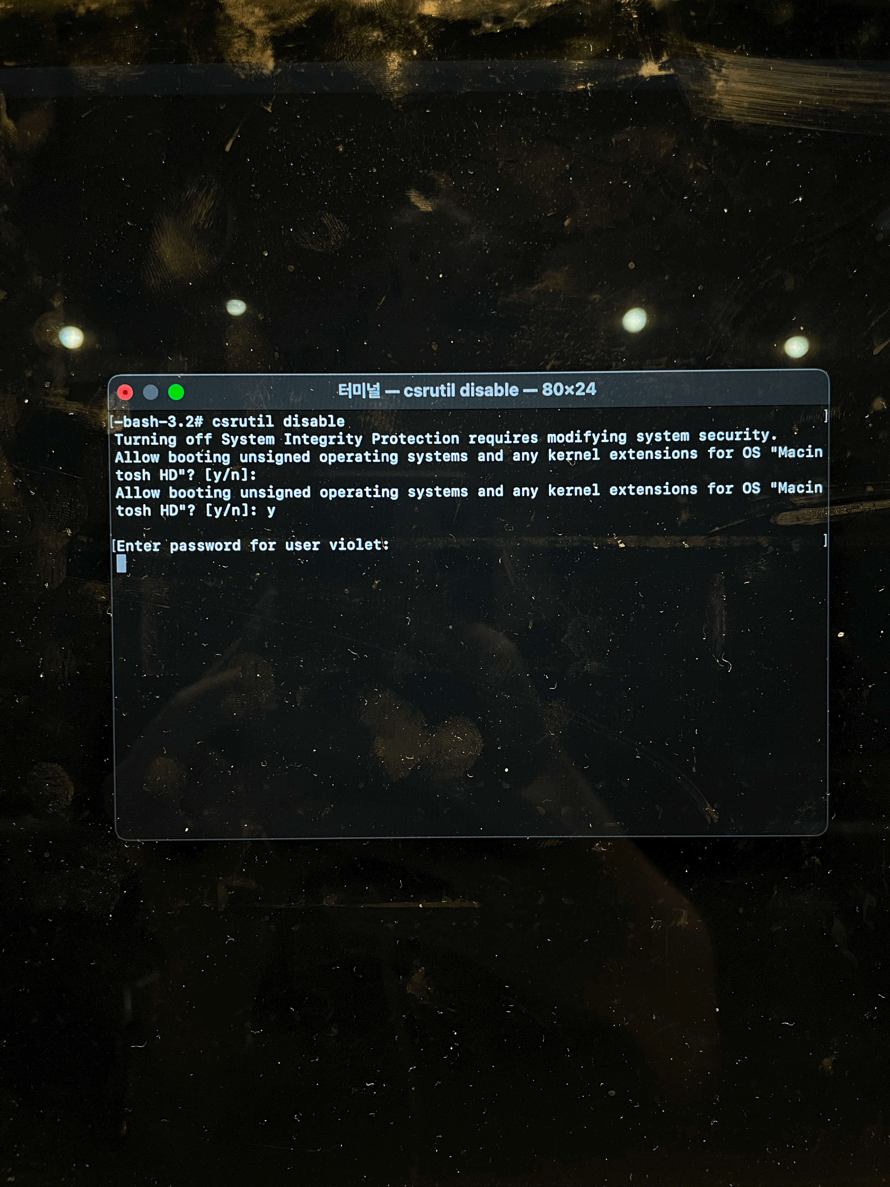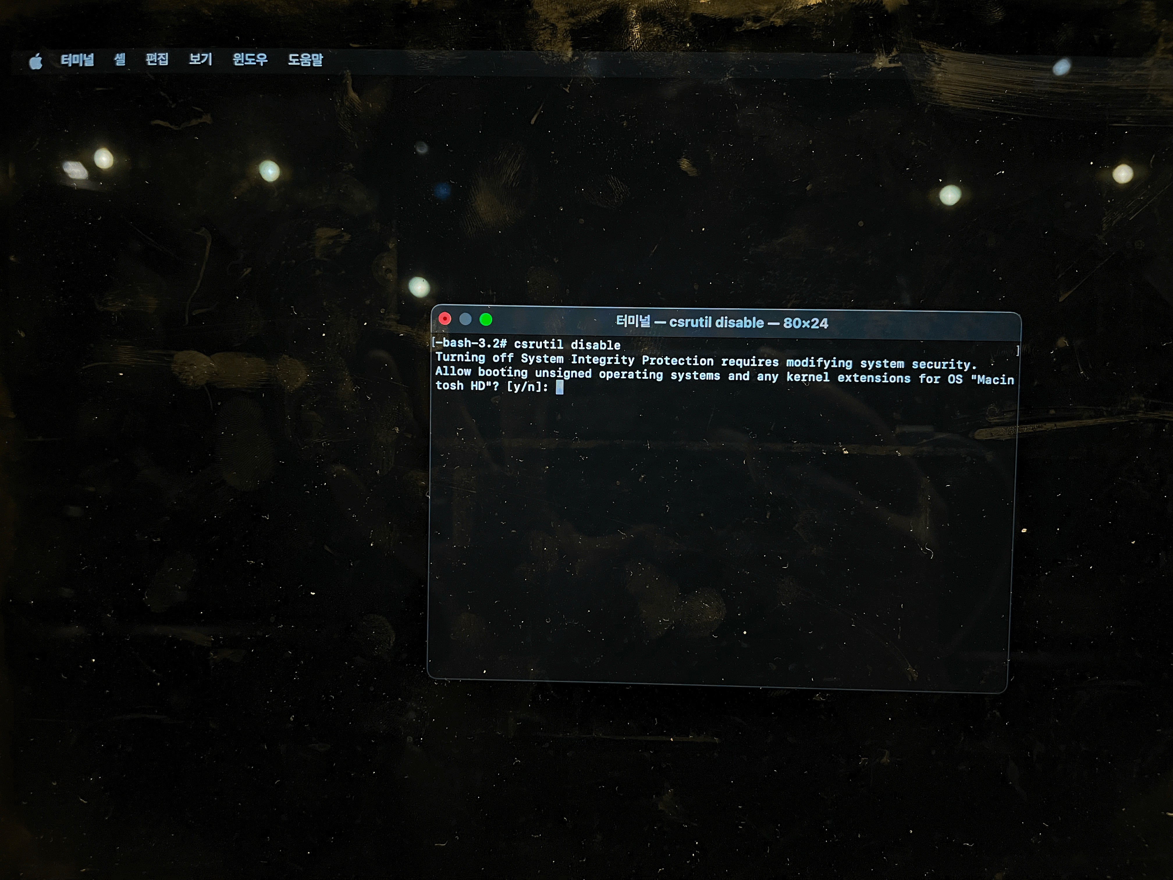 시스템 무결성 보호 비활성화(해제) 커맨드 csrutil disable