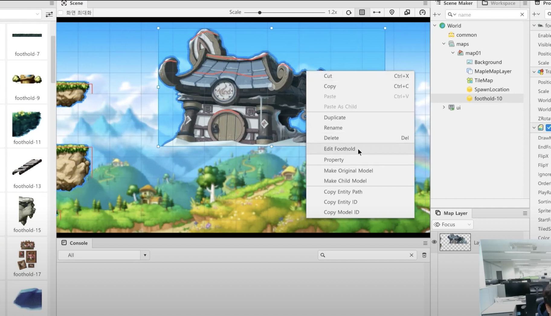 마우스 오른쪽 클릭, edit Foothold 를 누르면