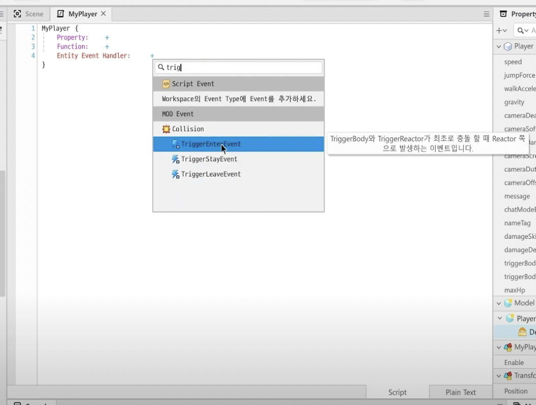 - TriggerEnterEvent : 엔티티 간 처음 충돌이 발생했을 때 1회 발생