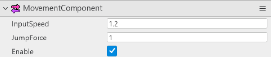 MovementComponent는 이동 속도와 점프의 정도, 활성화의 여부를 조절하는 프로퍼티가 존재합니다.