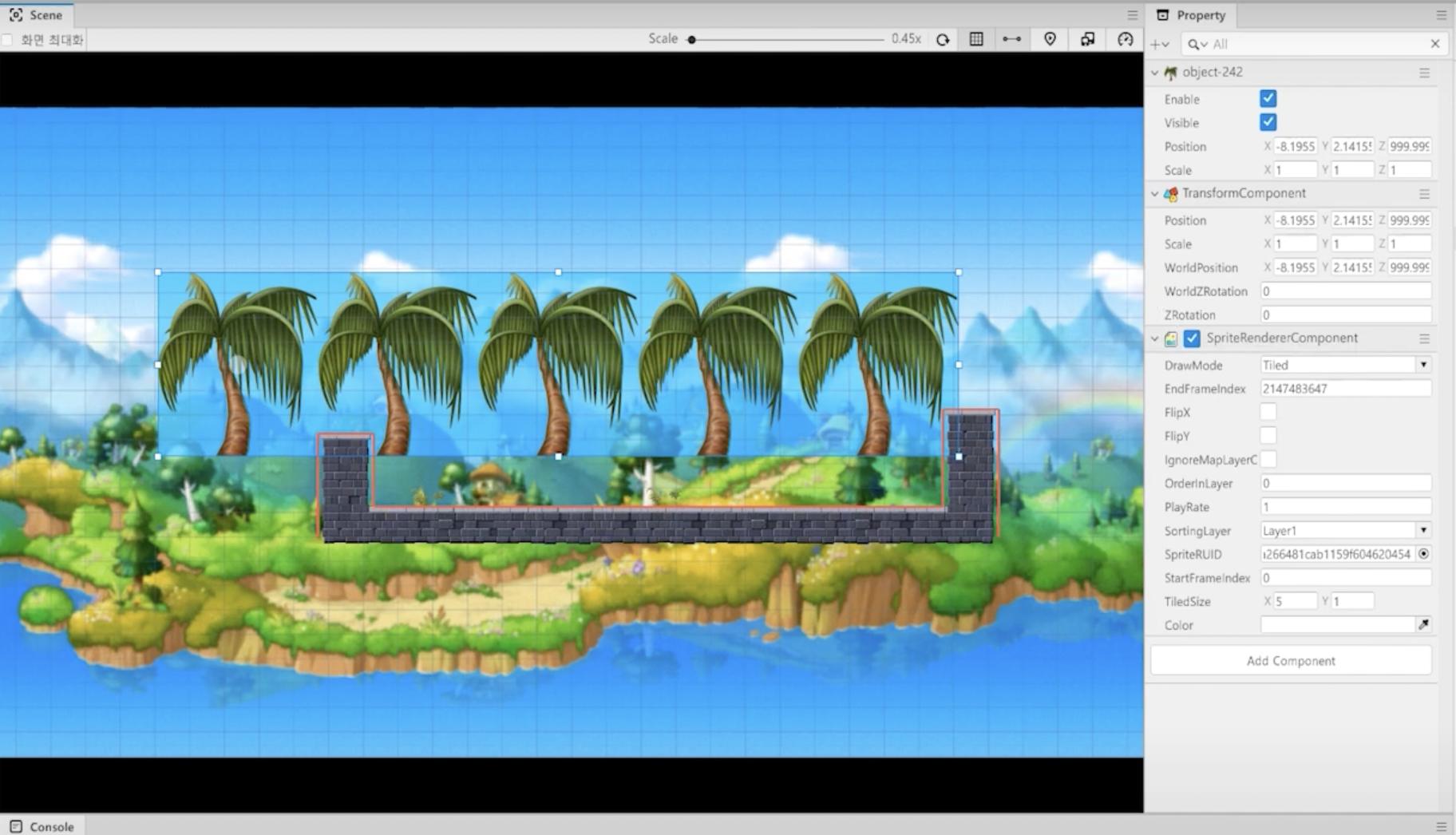 - Tile : 동일한 형태를 계속 이어나가는 오브젝트(예: 바닥 or 벽)